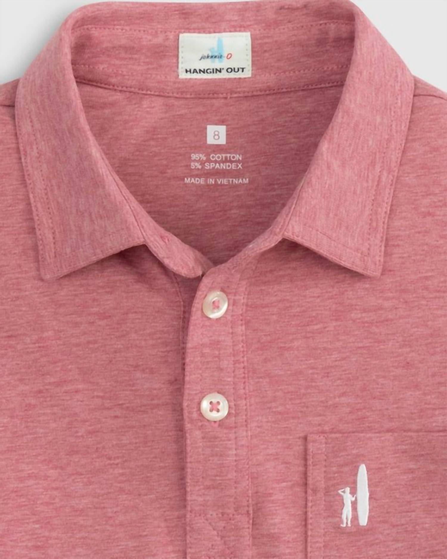 Introducing the Boys Heathered Original Polo by JOHNNIE-O, a stylish choice in a textured Cajun color ideal for summer. This classic polo features a cotton blend composition for comfort and flexibility and includes a three-button placket. Composition: 95% Cotton, 5% Spandex Mélange Jersey. Care instructions: Machine wash cold on a gentle cycle with like colors. Perfect for back-to-school occasions and carrying a subtle Y2K influence.