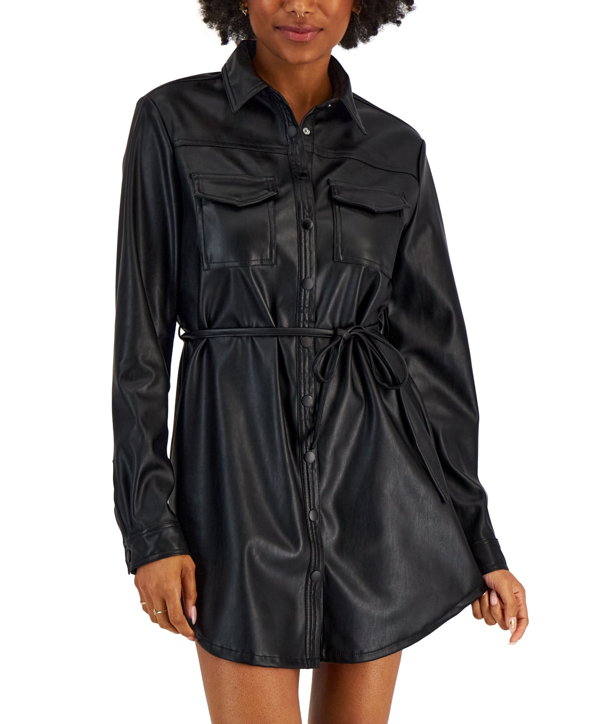 Kit & Sky delivers a look that is edgy and chic in every detail with this faux-leather mini shirtdress.| Collared neckline; Shirtdress silhouette| Unlined| XS=00/0-1/2| S=3/4-5/6| M=6/7-8/9| L=10/11-12/13