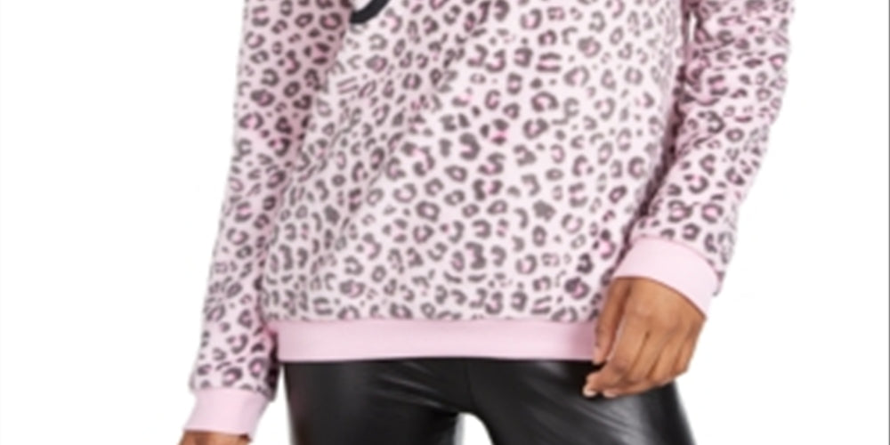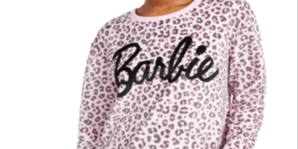 Love Tribe Junior's Barbie Leopard Print Plush Sweatshirt Pink Size X-Small