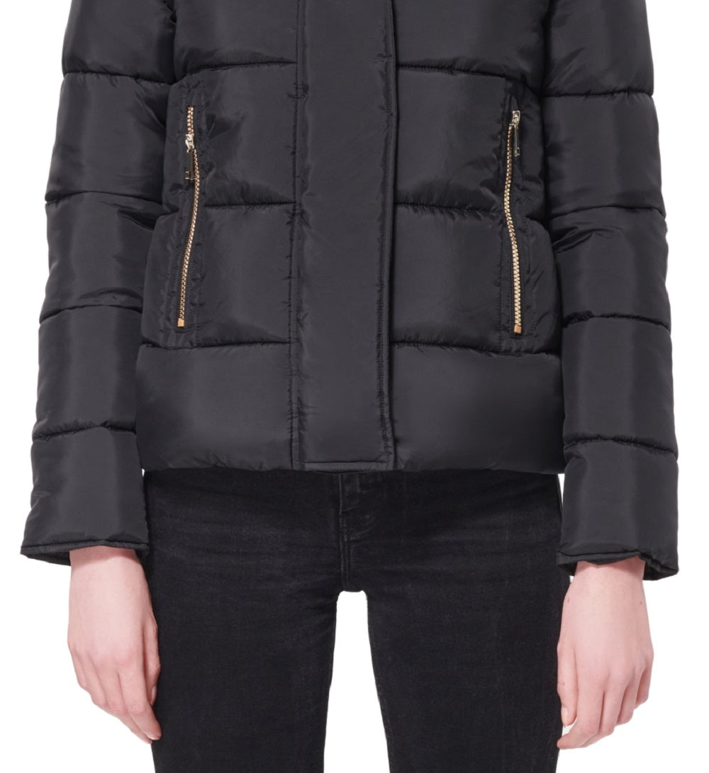 Maralyn & Me ups the cozy factor with this short puffer coat designed with fierce faux-fur trim around the hood