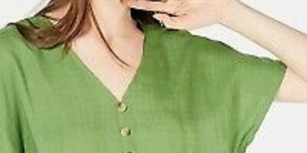 Relaxed fit; hits at hip|V-neck|Allover grid texture; decorative buttons at front; smocked hem|Dolman sleeves|Runs small, we suggest sizing up for the perfect fit|Modal