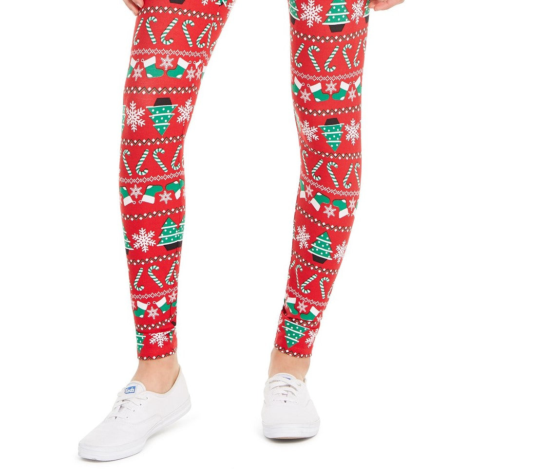 Planet Gold Juniors' Printed Holiday Leggings Wine Size Medium