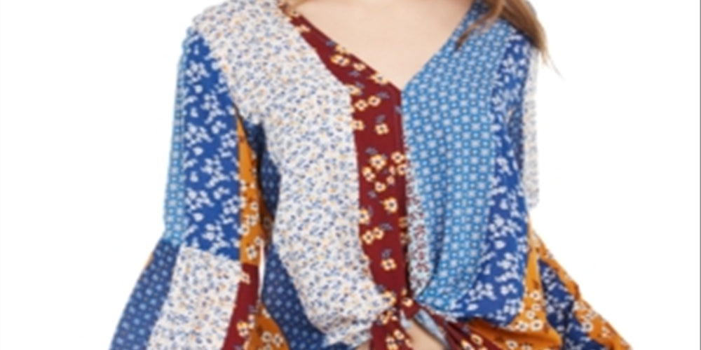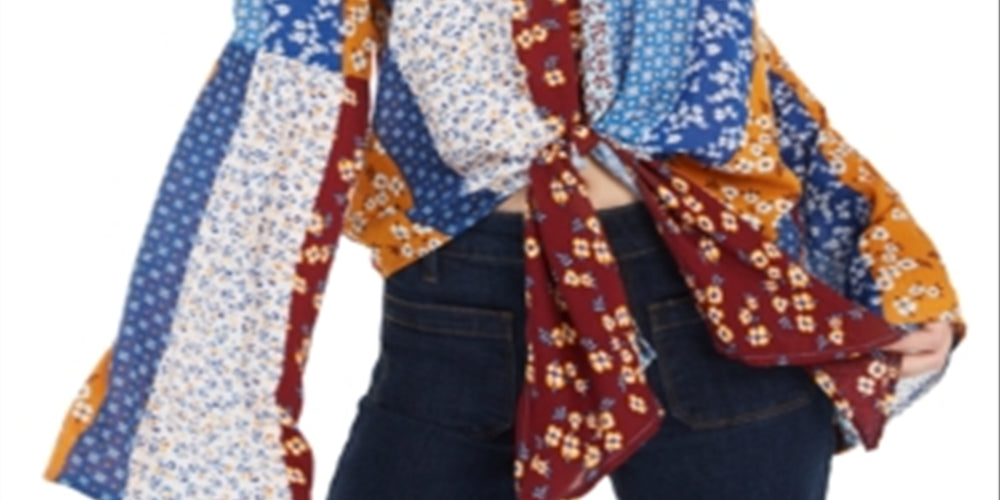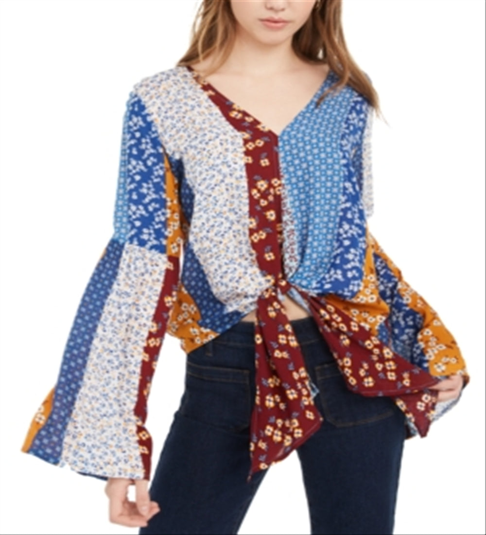 let your inner flower child show in this bohemian-inspired juniors' top from polly & esther| with wide bell sleeves and pattern blocking