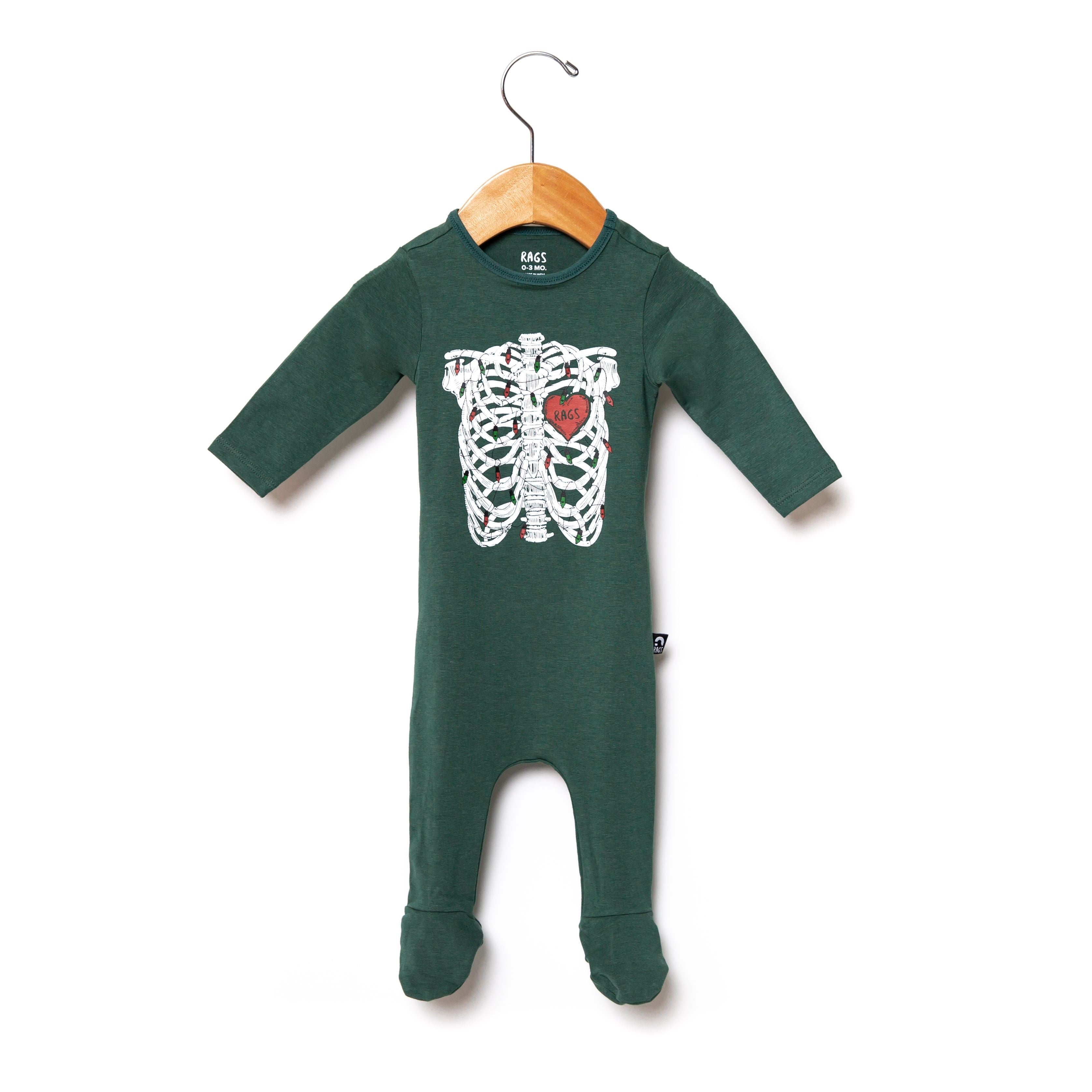 RAGS Apparel Kid's Infant Rag Romper Footies Green Size 0-3M