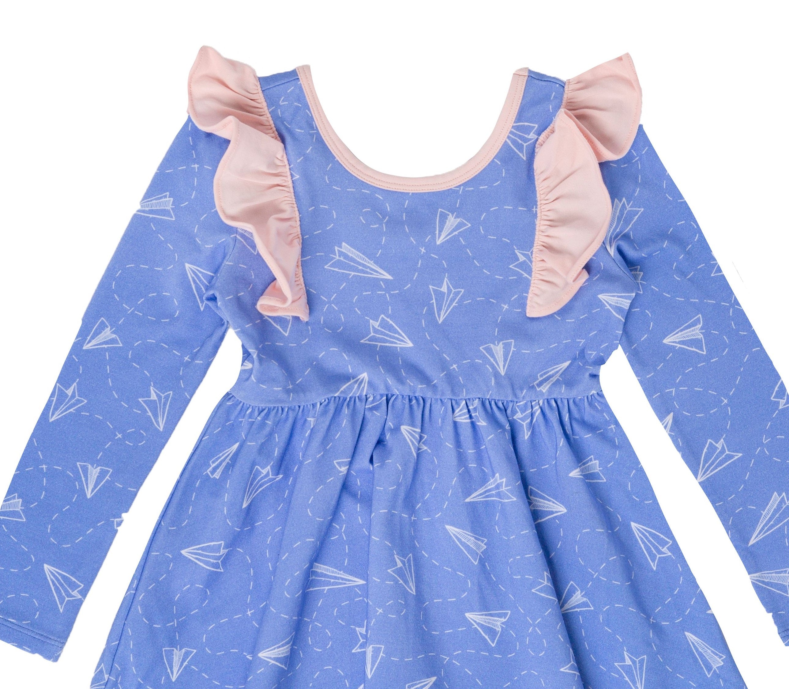 RAGS Apparel Kid's Long Sleeve Ruffle Swing Dress Blue Size 2T