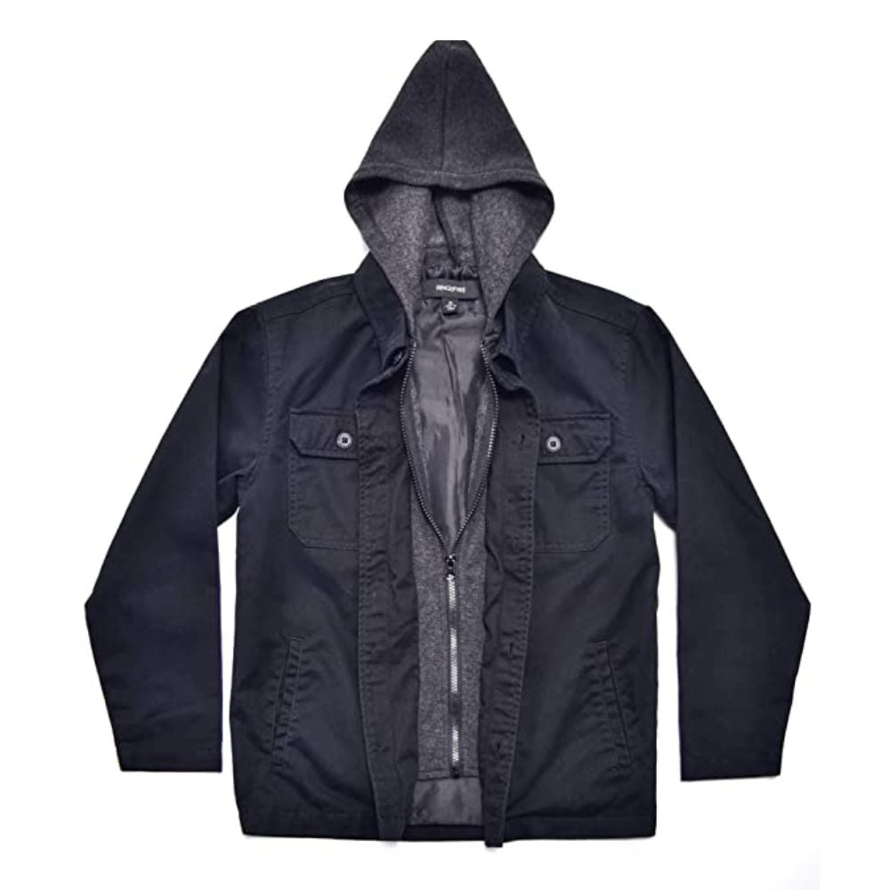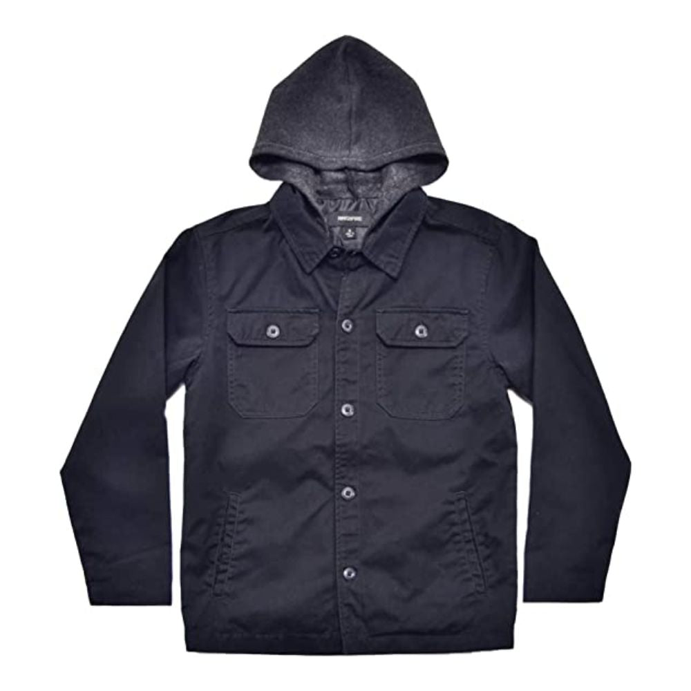 Ring of Fire Boys Woodman Jacket|This Woodman jacket from Ring of Fire is lined and features an attached hood| for all of his cold-weather days. Attached hood with drawstring Front zip closure with button placket Two hand pockets at side; two pockets at chest Body; all cotton; hood and placket; polyester; lining; polyester Machine washable Lined Imported Color; Black |elm.clearfix{*zoom;1}.clearfix;before|.clearfix;after{display;table;line-height;0;content;}.clearfix;after{clear;both}.hide-text{font;0/0 a;color;transparent;text-shadow;none;background-color;transparent;border;0}.input-block-level{display;block;width;100%;min-height;30px;-webkit-box-sizing;border-box;-moz-box-sizing;border-box;box-sizing;border-box}article|aside|details