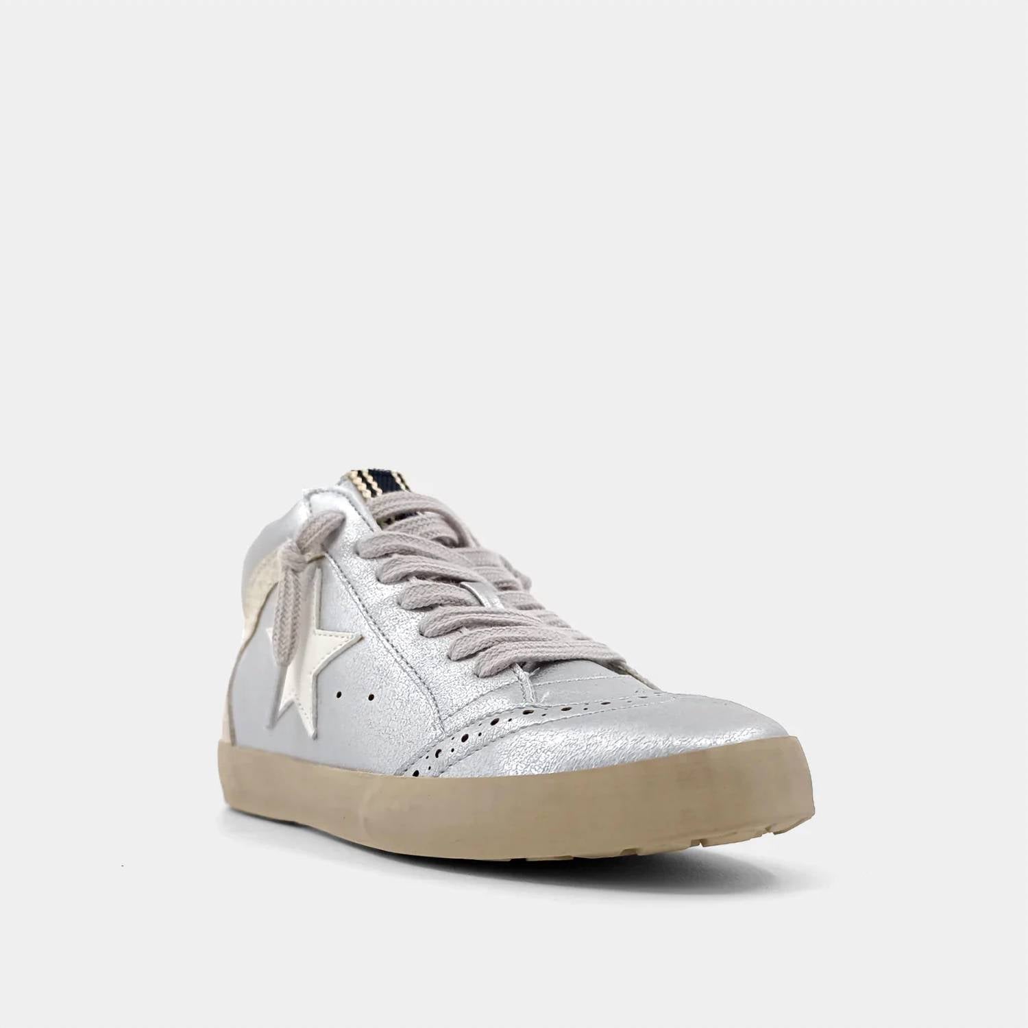 Stylish sneakers seamlessly combine vintage charm with contemporary flair. Crafted from high-quality faux leather and suede. Adorned with eye-catching metallic and feature the iconic star. Classic round toe design paired with a sturdy waffle rubber sole. Ensures that your child's comfort and durability are never compromised. Blending fashion and function in one enchanting package. Designed with little ones in mind, these sneakers are an essential for any kid who loves to shine.