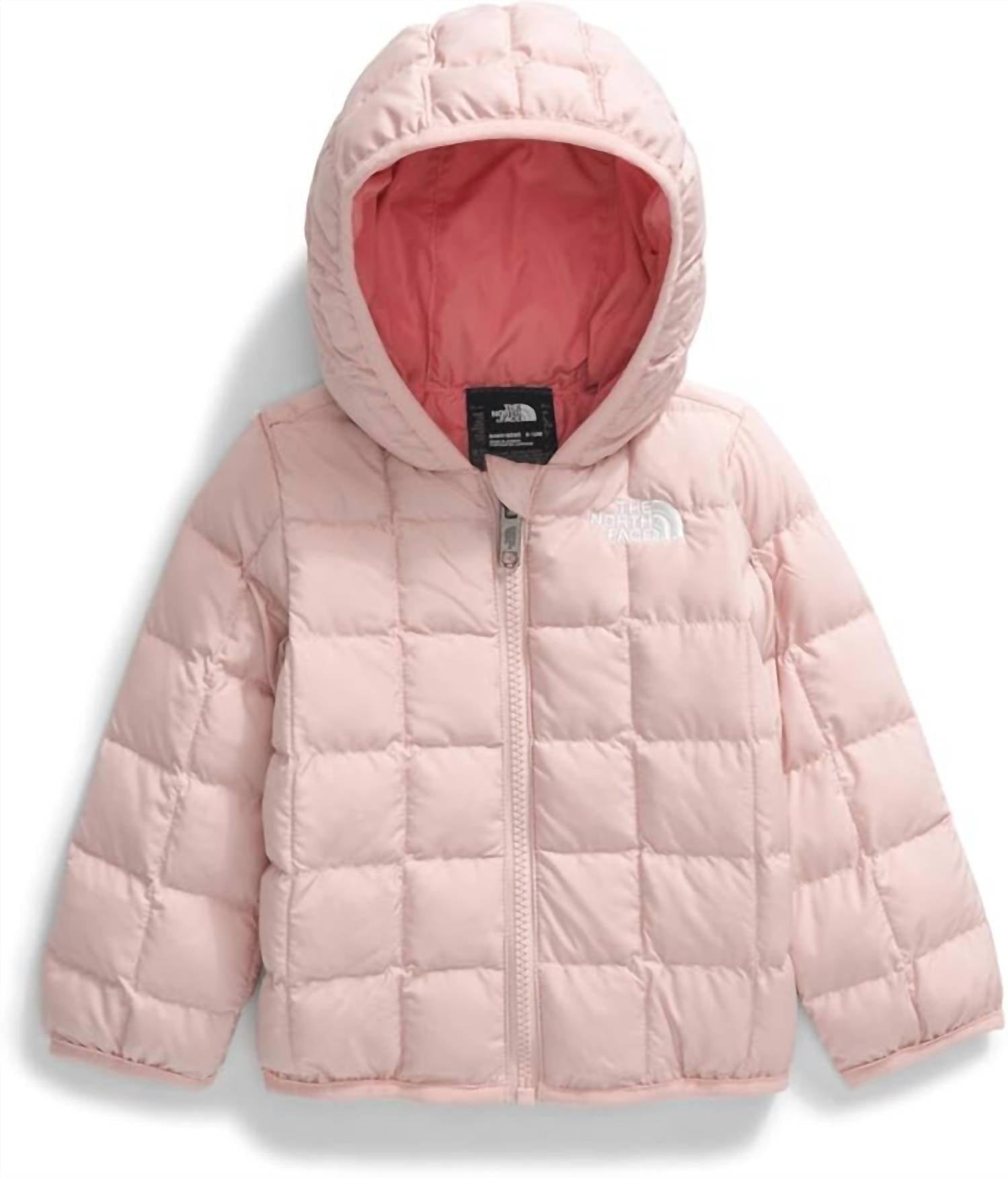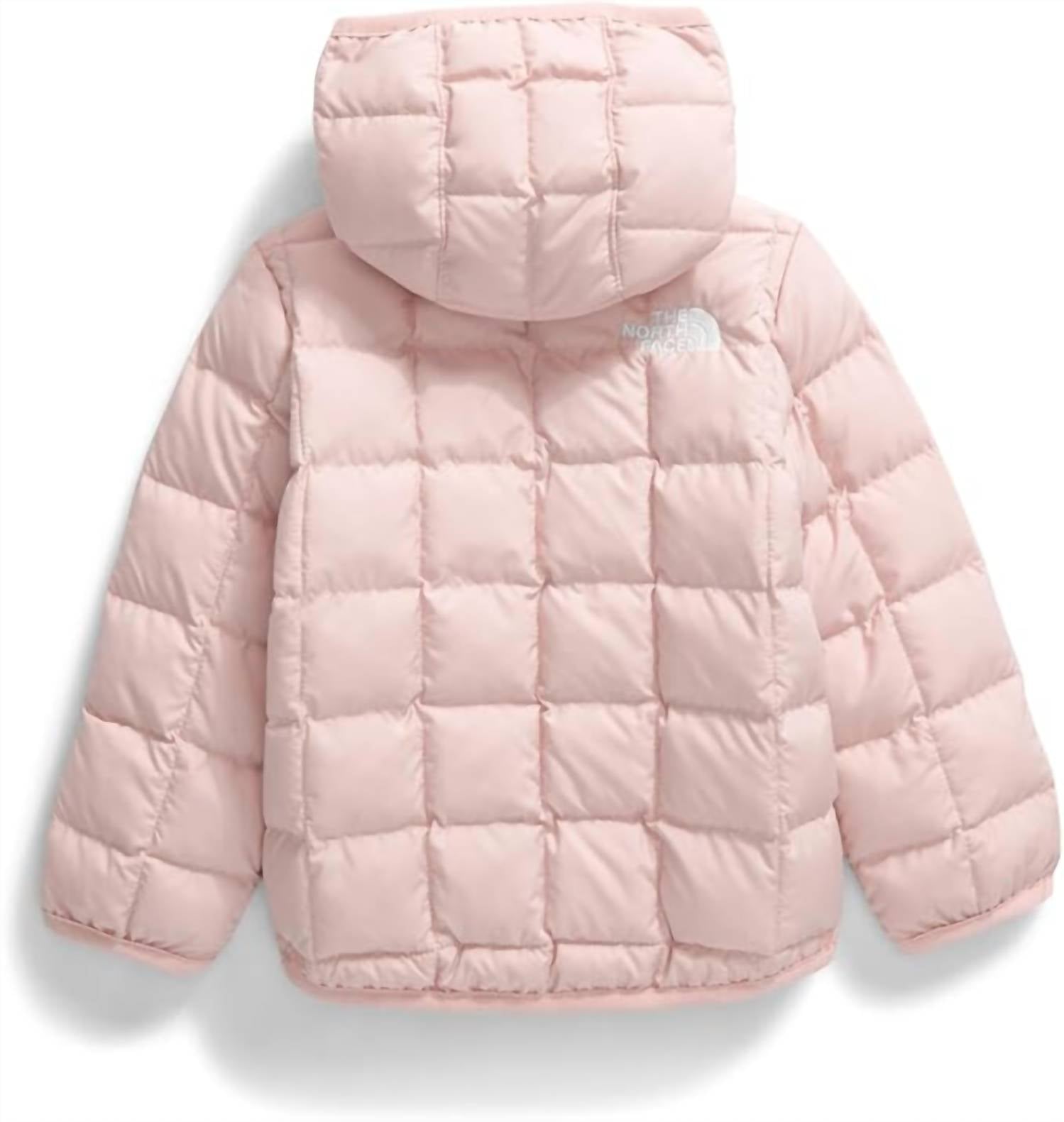 The North Face Baby Girl's Reversible Perrito Hooded Jacket in Pink Moss is your go-to for versatile winter wear. With raglan sleeves and composed of 100% recycled polyester, this jacket features a convenient reversible design and a non-PFC DWR finish for effective water repellency. It includes an attached three-piece hood, a drop-tail hem, elastic binding on the hood and cuffs, and an exposed VISLON® center front zip with a chin guard for extra comfort. Care: Machine wash as needed to keep it fresh for every fall adventure.