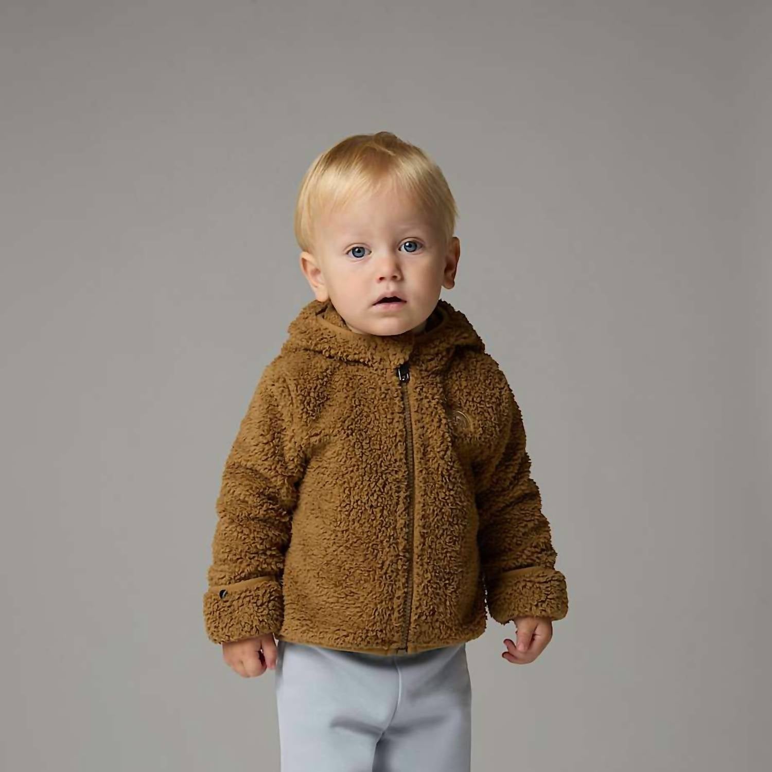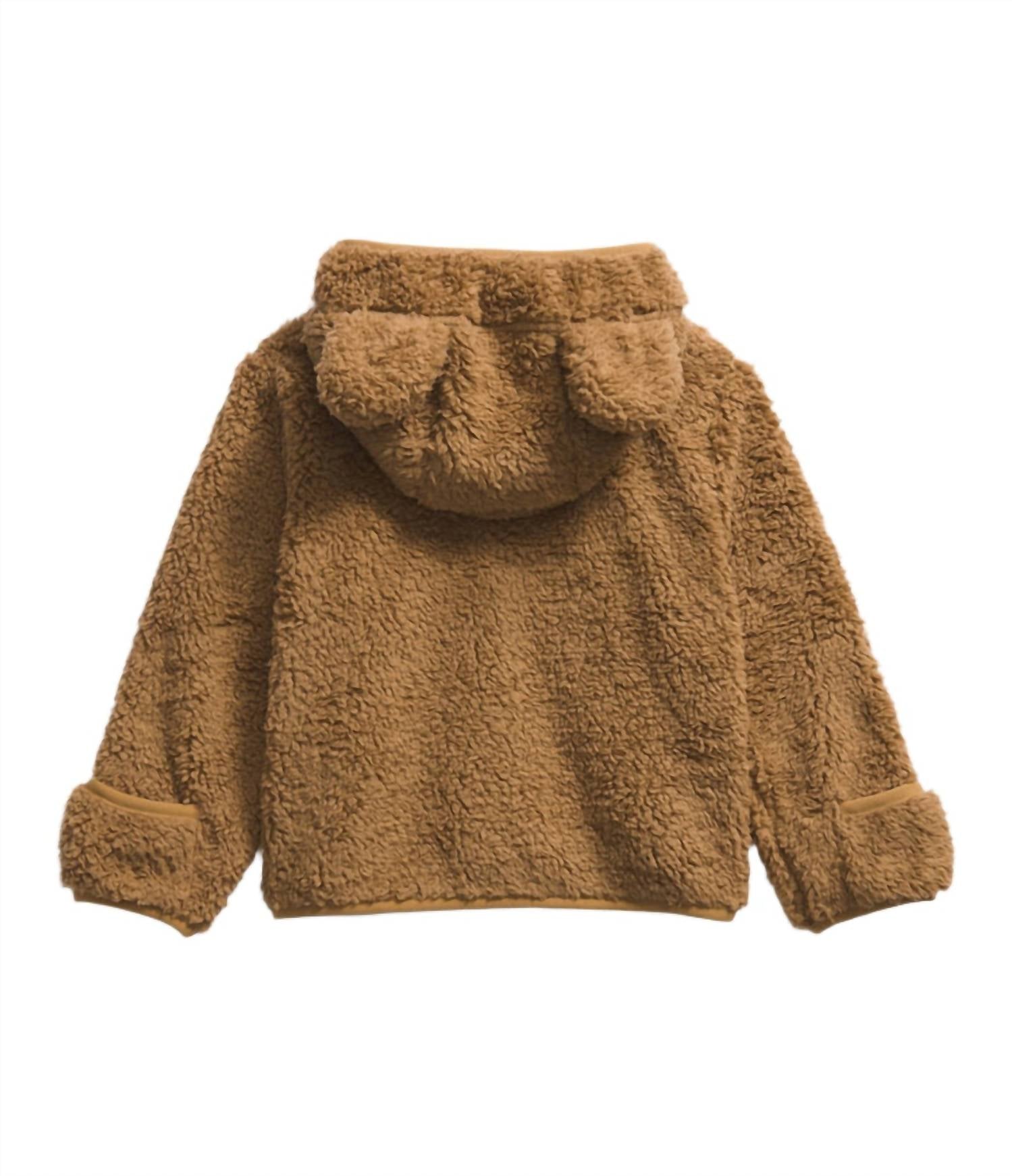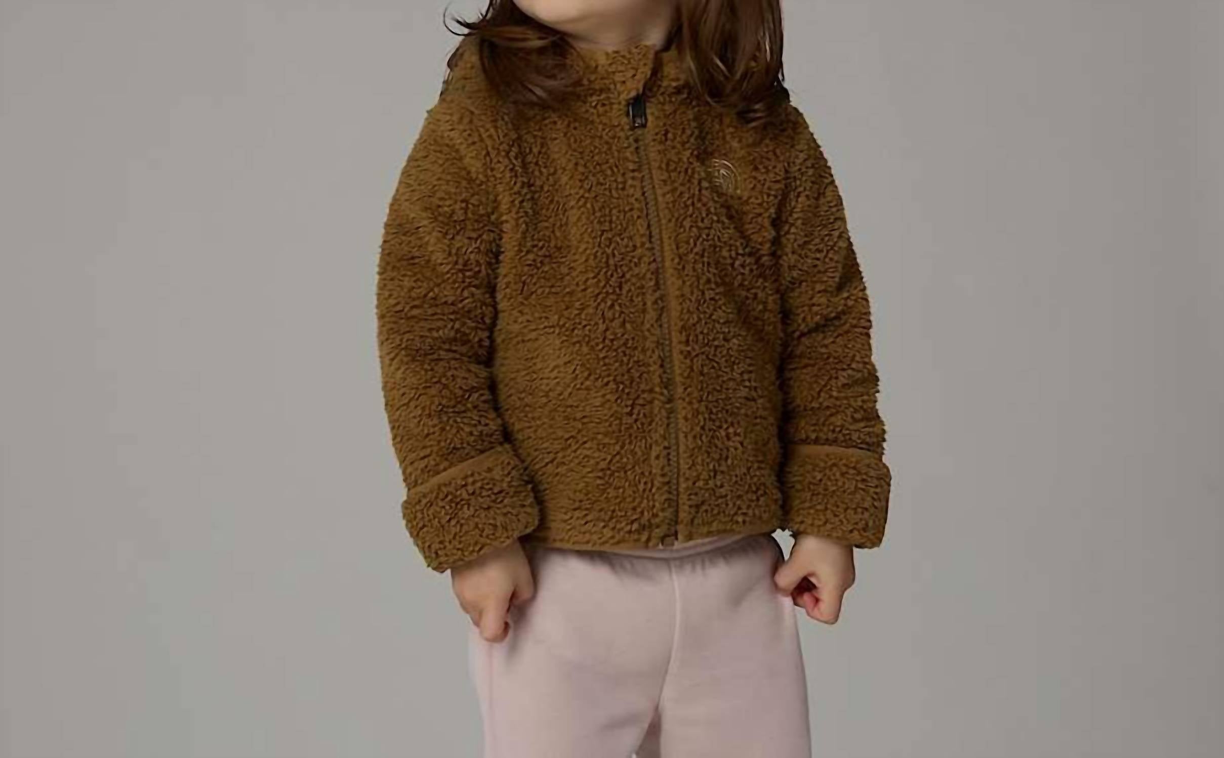 The Campshire Full-Zip Hoodie by THE NORTH FACE is a delightful piece that merges fun and functionality for girls. It features set-in sleeves and is crafted from 100% recycled polyester, offering both warmth and sustainability. The hoodie includes a three-piece design with self-fabric bear ears, fold-over mitts at the cuffs, and elastic binding on the hood, cuffs, mitts, and hem. Closure is secured with a VISLON® center front zip, accompanied by an auto-lock slider and chin guard, all in a charming Utility Brown textured pattern.