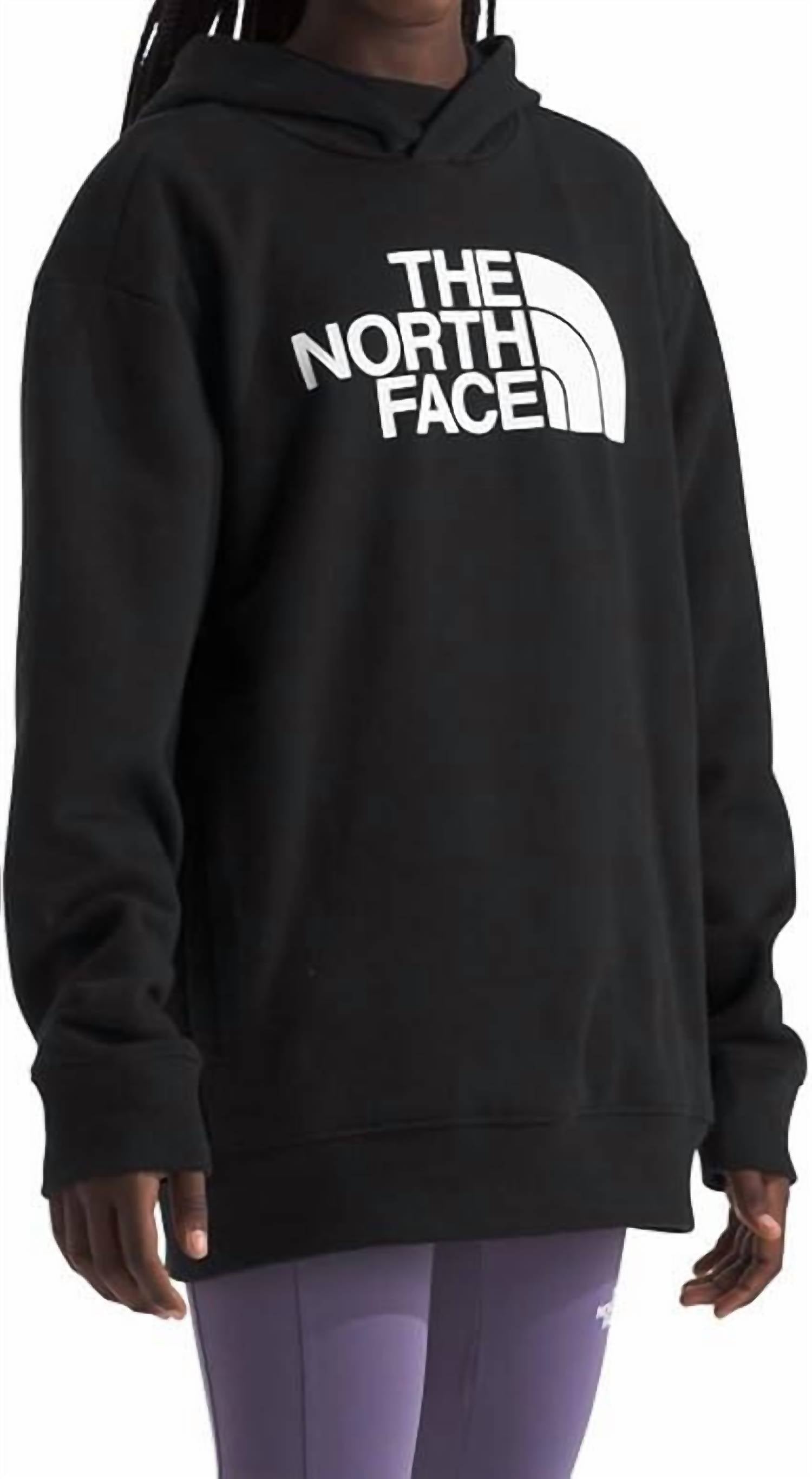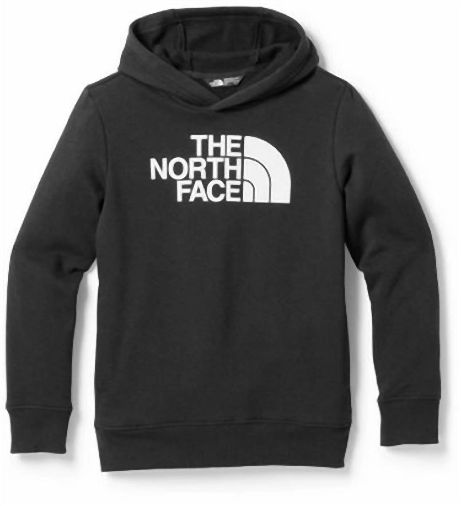 Discover ultimate comfort with THE NORTH FACE Half Dome Camp Fleece Pullover Hoodie, perfect for your adventure-seeking girl. This cotton blend hoodie, crafted from 73% recycled climate-conscious cotton and 27% recycled polyester, offers warmth and sustainability in one. Its black and white graphic design makes it a stylish choice for fall travel. Easy to maintain, simply machine wash it to keep it fresh and ready for the next outing.