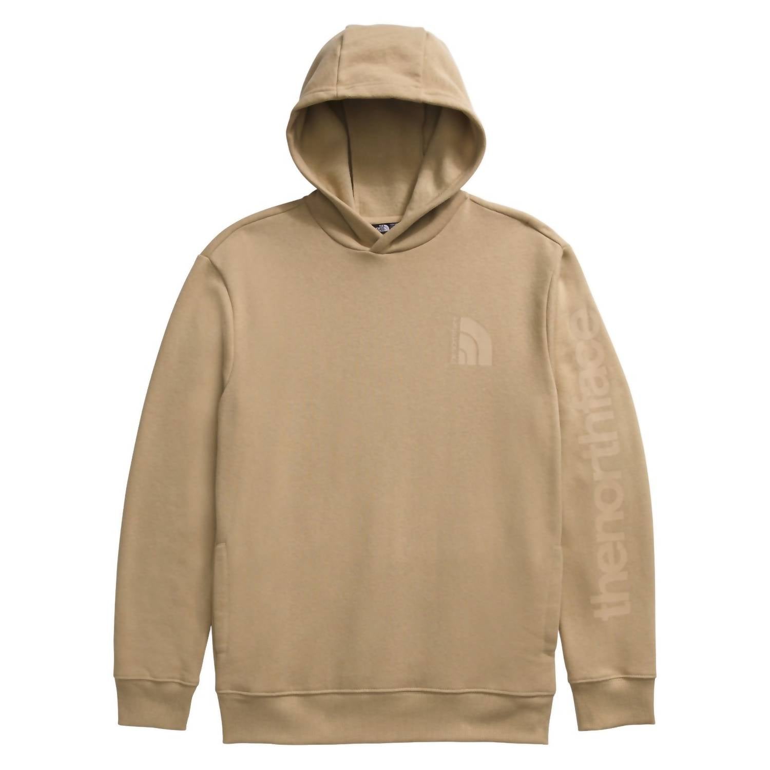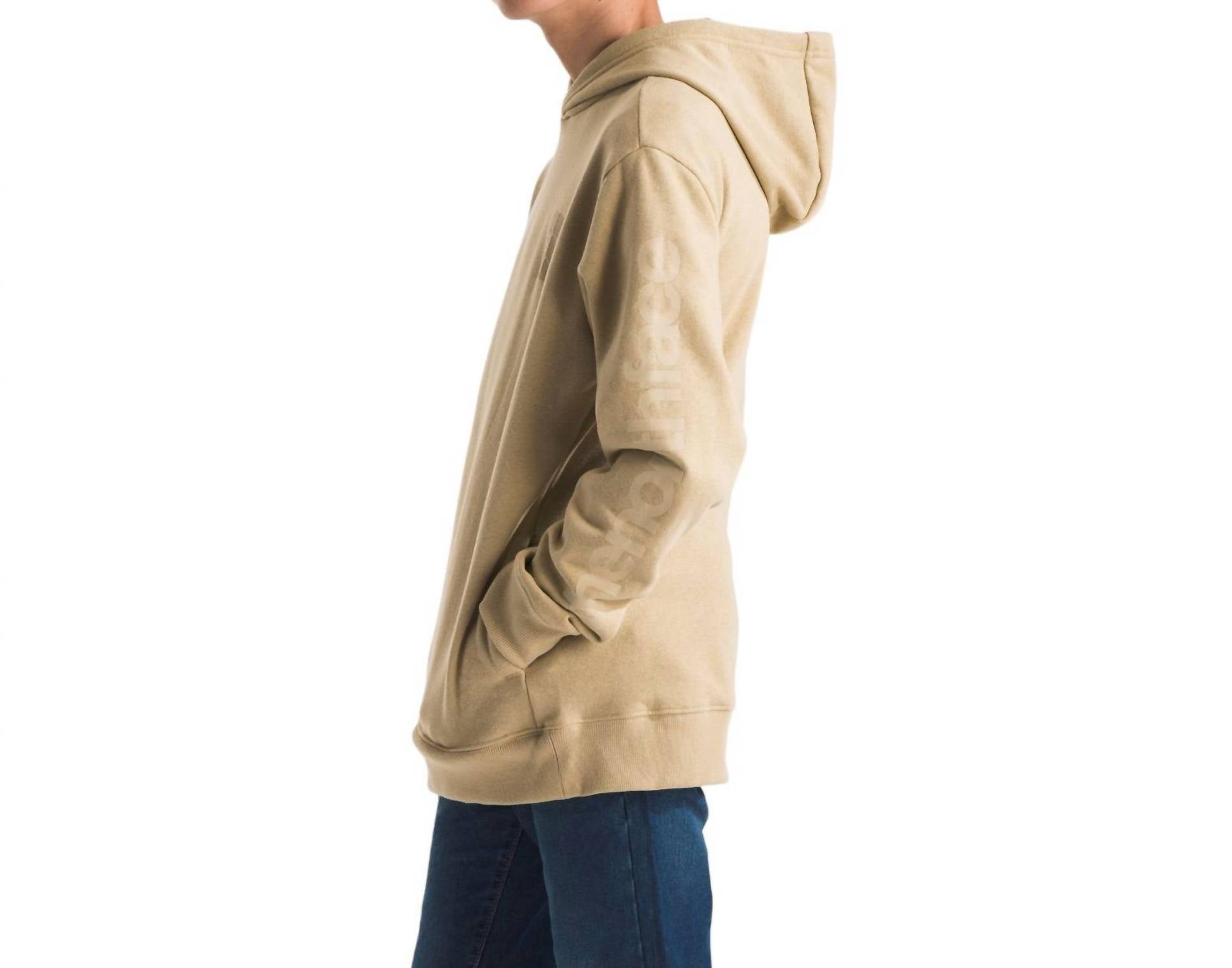 Elevate your boy's wardrobe with the Jumbo Camp Fleece Pullover Hoodie by THE NORTH FACE, a must-have for fall adventures. This khaki stone hoodie features a graphic pattern, perfect for adding a touch of streetwear style to travel occasions. Composition: 73% Climate Conscious Cotton, 27% Recycled Polyester. Crafted from a comfortable cotton blend, this timeless piece offers sustainable style and reliable quality.
