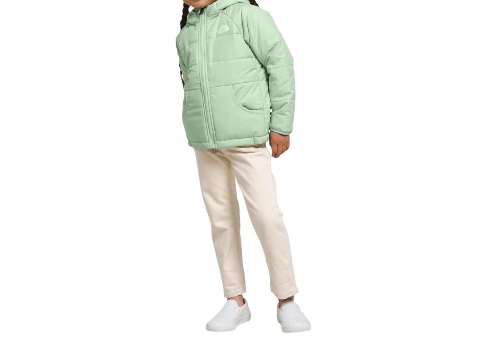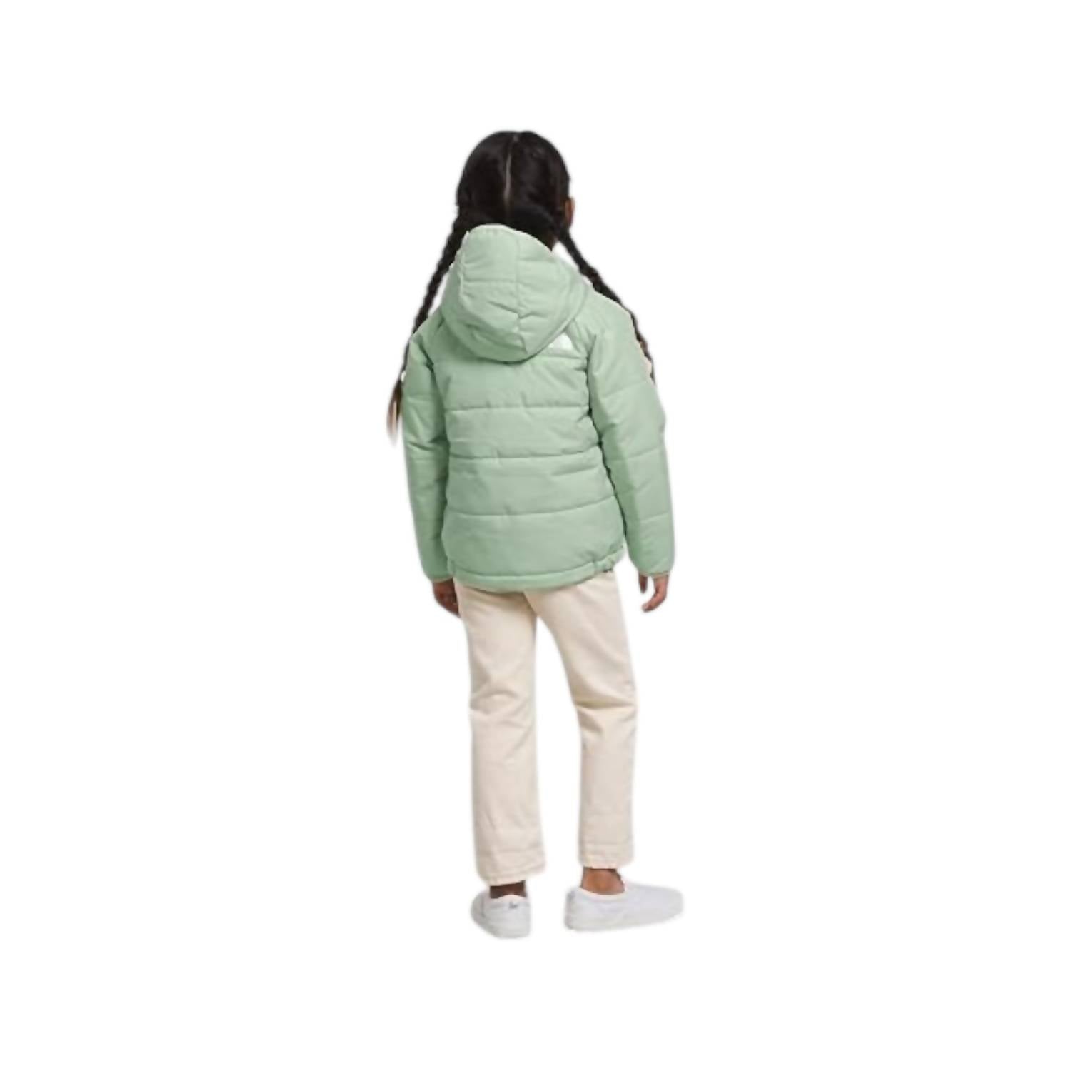 Gift your child the cozy comfort of The North Face Kids Reversible Perrito Hooded Jacket in Misty Sage. This textured jacket features an all-polyester main material with Heatseeker Eco insulation for warmth. Designed with a fully reversible construction and an attached three-piece hood, your kid is ensured head-to-toe protection during chilly days. Proudly crafted in Uganda, this jacket requires gentle care with hand washing.