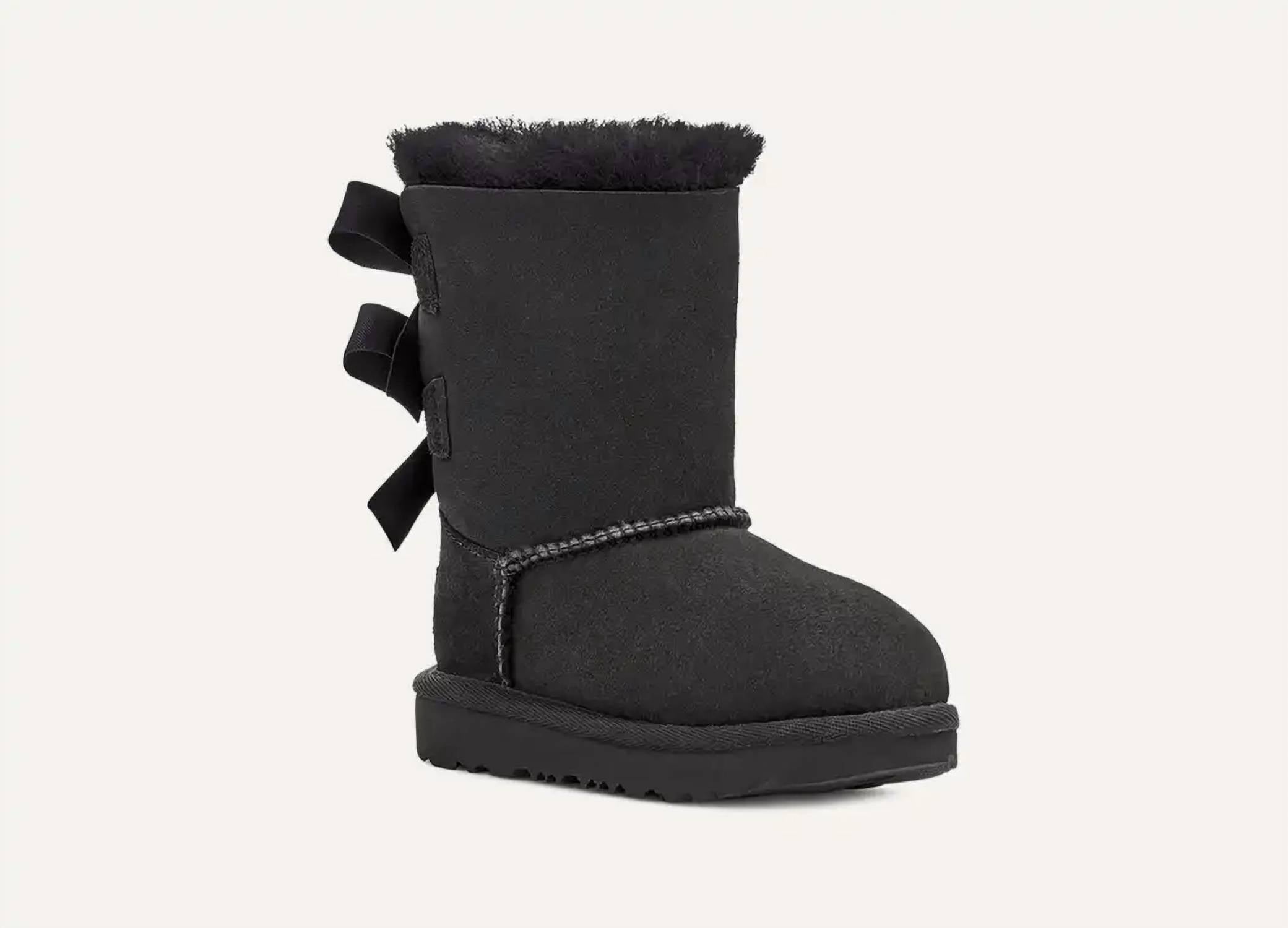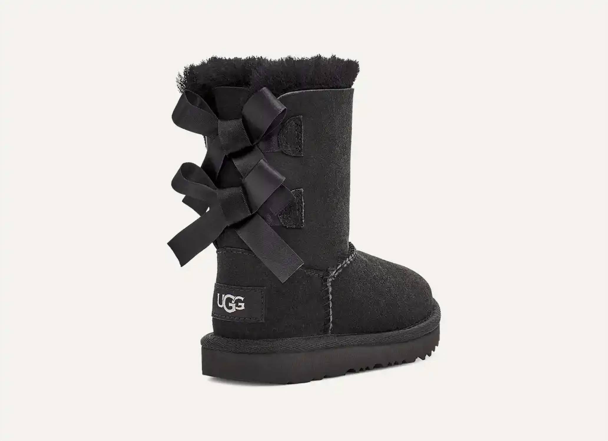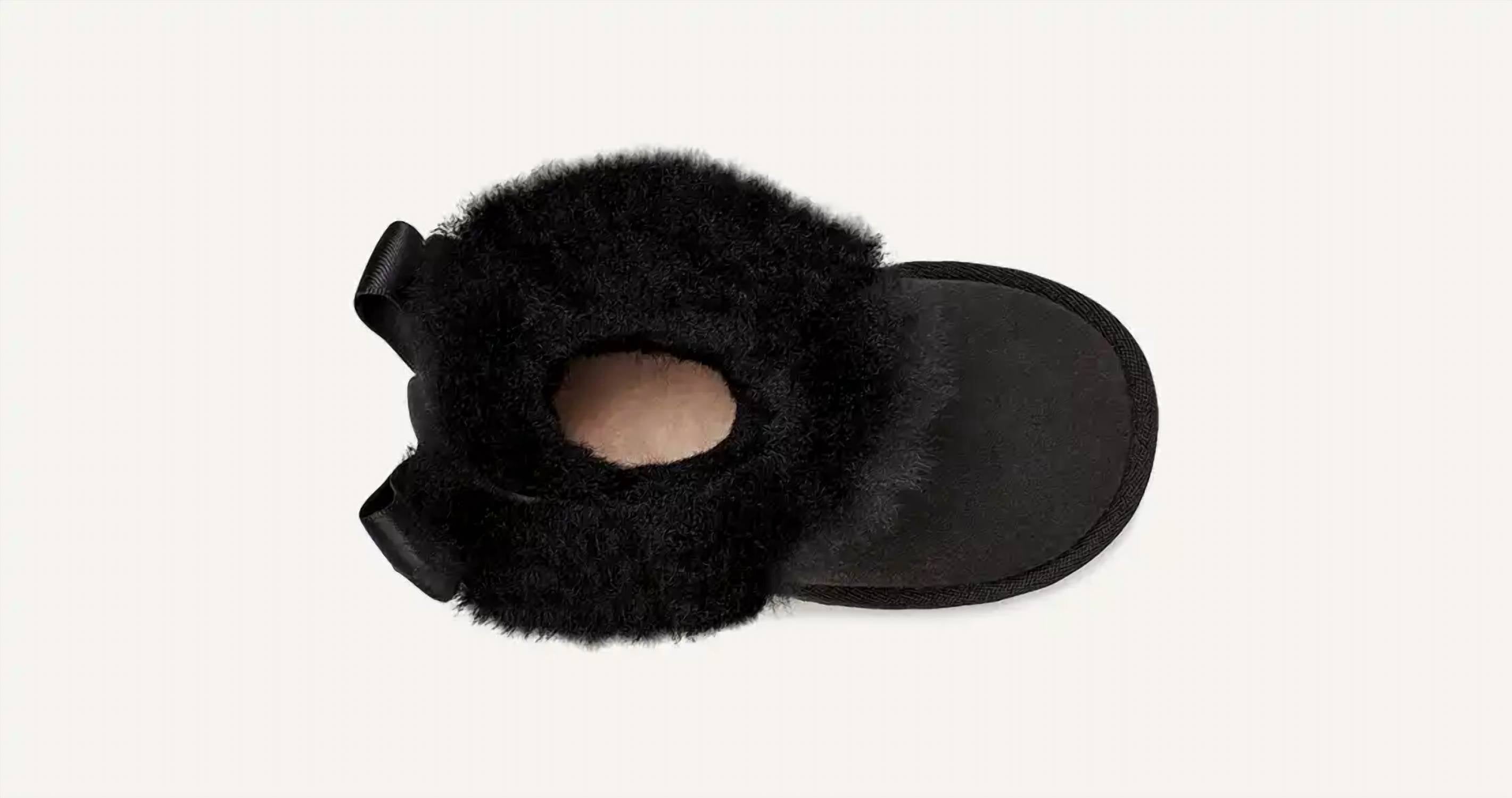 We added sweet silky bows to your little one's favorite boot, but kept the super-soft sheepskin feel they love. Built to move the way kids do, each boot features a rocker-bottom shape for a barefoot feel and our ultra-lightweight outsole for traction and durability. Pair with the same style in our women's sizes for cute mini-me moments. The outsole of this product is either a sugarcane EVA outsole, which is a responsible compound using sugarcane foam that allows us to reduce dependency on fossil fuels by replacing petroleum-based ethylene, or a Treadlite by UGG™ outsole. This product was made in a factory that supports women in our supply chain with the help of HERproject. This collaborative initiative creates partnerships with brands like ours to empower and educate women in the workplace. Item No. 1017394T Protected: Post Applied Treatment Topically applied water repellency treatment 17mm Twinface sheepskin upper Fixed satin bows along back shaft 17mm sheepskin lining 17mm UGGplush™ 80% upcycled wool, 20% TENCEL™ Lyocell insole or 17mm UGGplush™ 60% upcycled wool, 40% TENCEL™ Lyocell insole Foam footbed Sugarcane EVA outsole or Treadlite by UGG™ EVA outsole Textile binding made from 100% recycled polyester fibers 4" shaft height Woven heel label with The UGG® Logo Best for: Casual RN 88276 This product contains real fur from sheep or lamb. Fur may be sourced from Australia, Ireland, the United Kingdom, or the United States. It has been artificially dyed and treated.