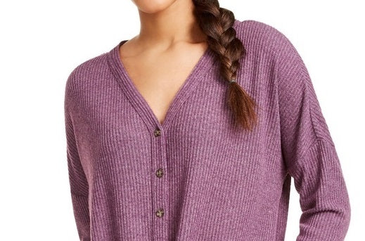 Relaxed fit|V-neck; front button closures|Textured fabric; self ties at front waist; high-low hem|Long sleeves with drop shoulders|Runs small; we suggest sizing up for the perfect fit
