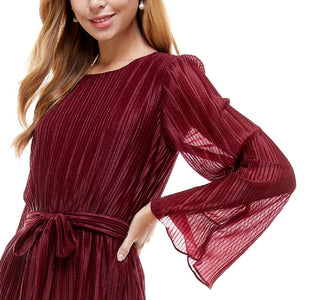 City Studios Junior's Pleated Bell Sleeve Dress Purple Size Large
