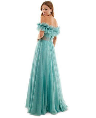 Say Yes To The Prom Junior's Off The Shoulder Ruffled Glitter Gown Green Size 13