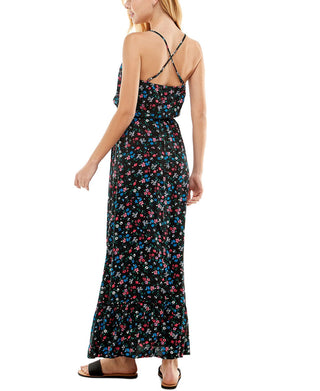 Kingston Grey Junior's Printed Crisscross Maxi Dress Black Size Medium