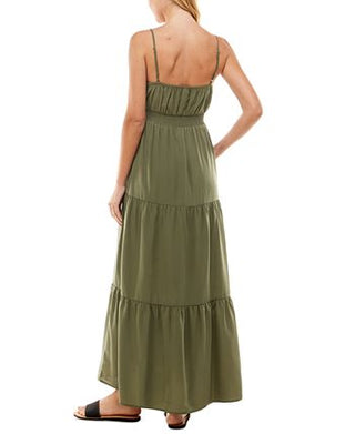 Kingston Grey Junior's Tie Front Tiered Maxi Dress Green Size XX-Large