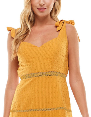 City Studios Junior's Clip Dot Bow Shoulder Dress Yellow Size Medium