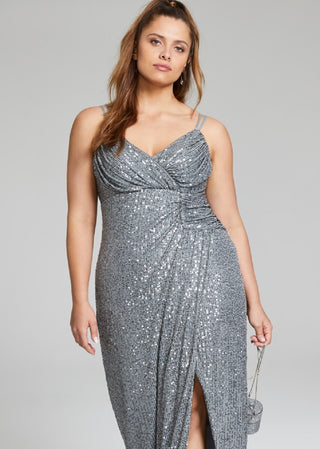 City Studios Junior's Ruched Metallic Gown Gray Size 14