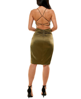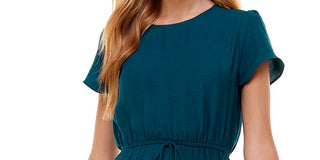 City Studios Junior's Cowlneck Pleat Detail Dress Green Size 13