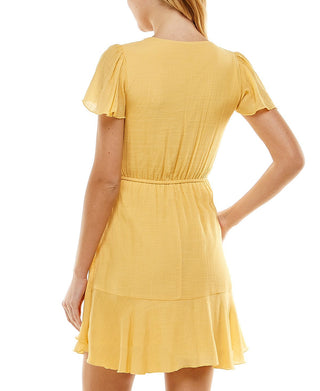 City Studios Junior's Ruffled Faux Wrap Dress Yellow Size Small