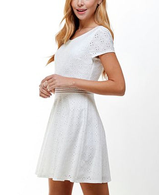 City Studios Junior's Short Sleeve Eyelet Fit & Flare Dress White Size 1