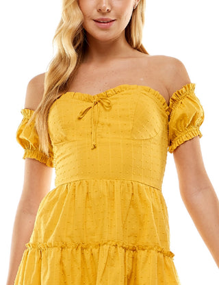 City Studios Junior's Clip Dot Tiered Dress Yellow Size 5