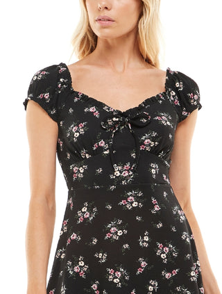 Ultra Flirt Junior's Floral Print Mini Dress Black Size Small