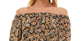 Ultra Flirt Junior's Off The Shoulder Floral Print Top Black Size Medium
