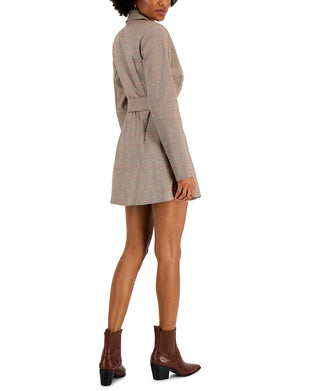 Kit & Sky Junior's Plaid Blazer Dress Brown Size Medium