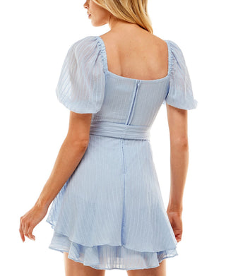 B Darlin Junior's Puff Sleeve Tie Waist Dress Blue Size 12