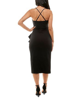 Emerald Sundae Junior's Ruffled Midi Dress Black Size Large