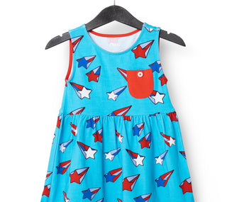 RAGS Apparel Kid's Sleeveless Button Pocket Tiered Dress Blue Size 3-4