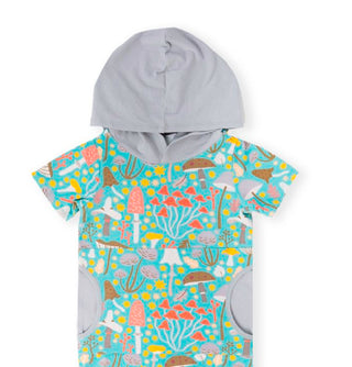 RAGS Apparel Kid's Short Sleeve Hooded Peek Pocket Rag Romper Grey Size 2T