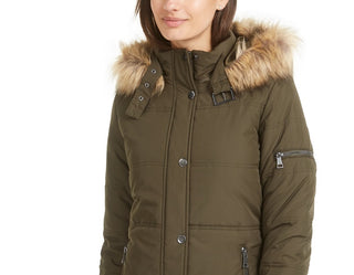 Maralyn & Me Juniors' Faux-Fur-Trim Hooded Puffer Coat Green Size Medium
