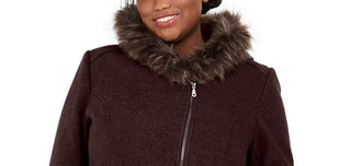 Maralyn & Me Juniors' Plus Size Asymmetrical-Zip Faux-Fur-Trim Hooded Coat Zinfandel Size 2X