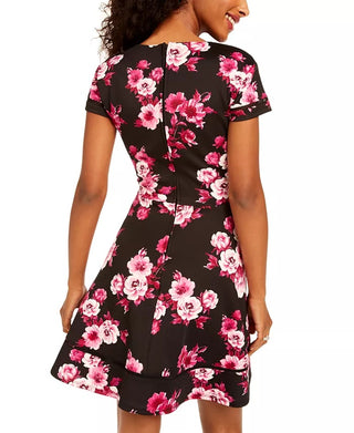 City Studios Juniors' Floral-Print Fit & Flare Dress Bright Purple Size 1