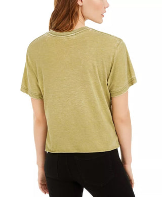 Rebellious One Juniors' Elephant Metallic Cropped Graphic T-Shirt Med Green Size Medium