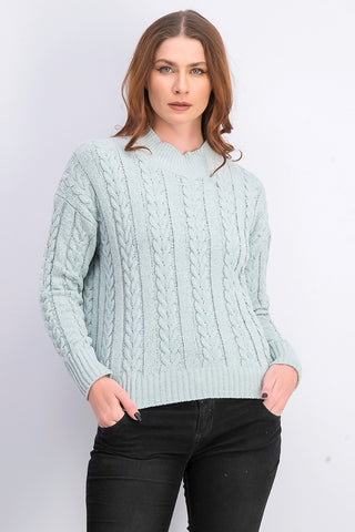 Hippie Rose Juniors' Cable-Knit Drop-Shoulder Sweater Green Size Extra Small