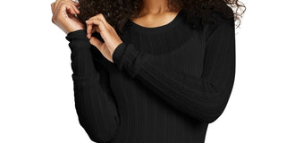 Hooked Up By Iot Juniors' Pointelle Sweater Black Size Medium