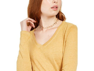 Ultra Flirt Juniors' Long-Sleeved Textured Boyfriend T-Shirt Dark Yellow Size Large