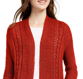 Pink Rose Juniors' Eyelet Long Cardigan Red Size Extra Large