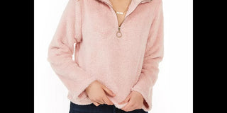 Self Esteem Junior's Zip Front Fuzzy Zip Up Top Pink Size X-Large