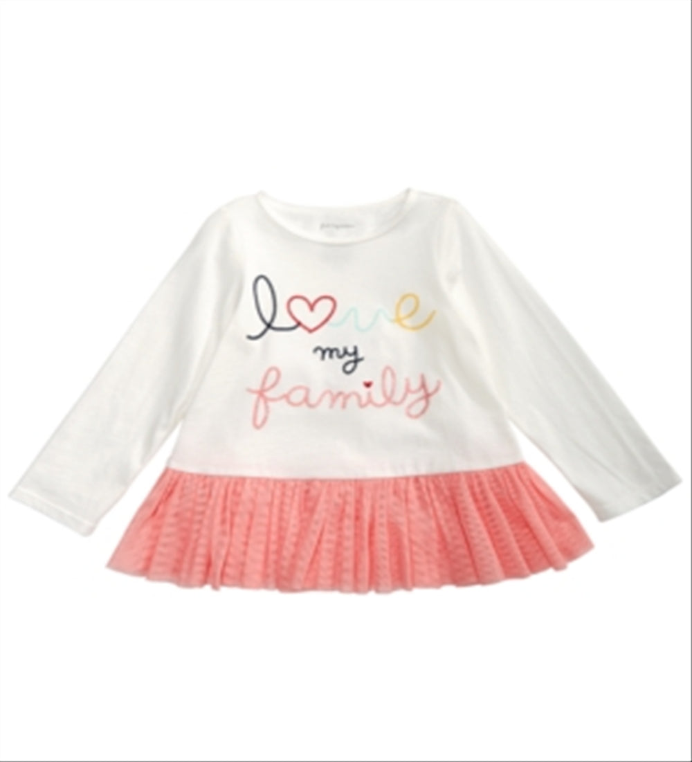 First Impressions Baby Girl's Family Print Cotton Peplum T-Shirt White Size 6-9MOS