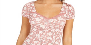 Planet Gold Juniors' Printed Puff-Sleeve Crop Top Red Size Medium