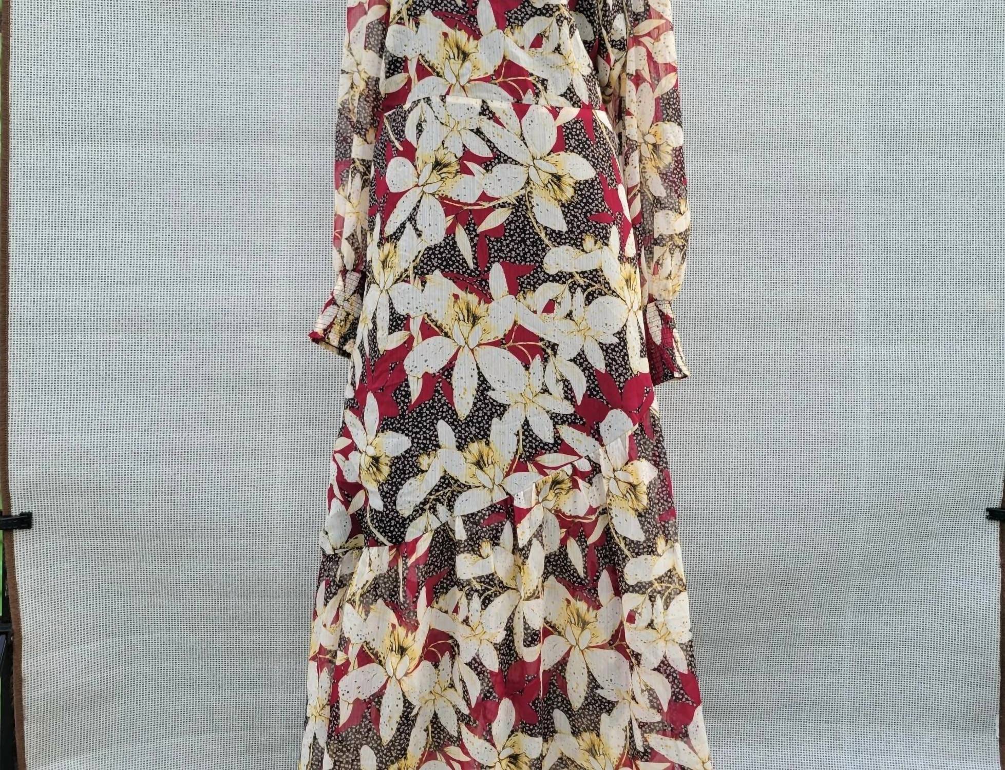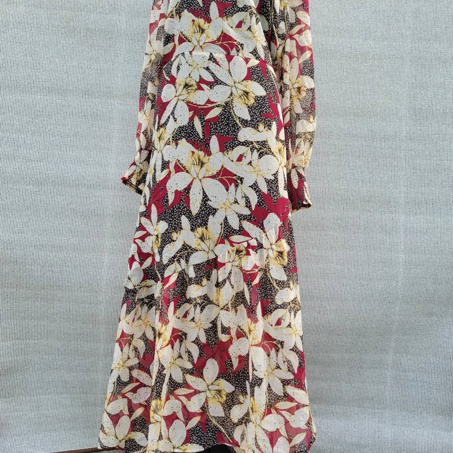 Who doesn't love a good maxi dress? This one you'll be reaching for season after season. Introducing the Floral Long-Sleeve Wrap V-neck Dress by Bar III, your perfect vacation companion. This maxi dress showcases elegant long sleeves with smocked cuffs and a wrap silhouette, measuring 57 inches in length. Crafted from 100% polyester, it is adorned with a Shadow Bloom floral pattern and features a chic V-neckline. Originating from Vietnam, it secures with a tie closure, making it an effortless choice for summer occasions.