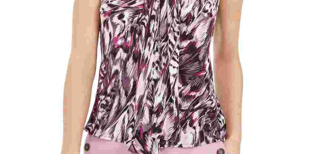 Bar III Women’s Printed Tie-Neck Top (S Begonia Multi) Bright Pink Size Small