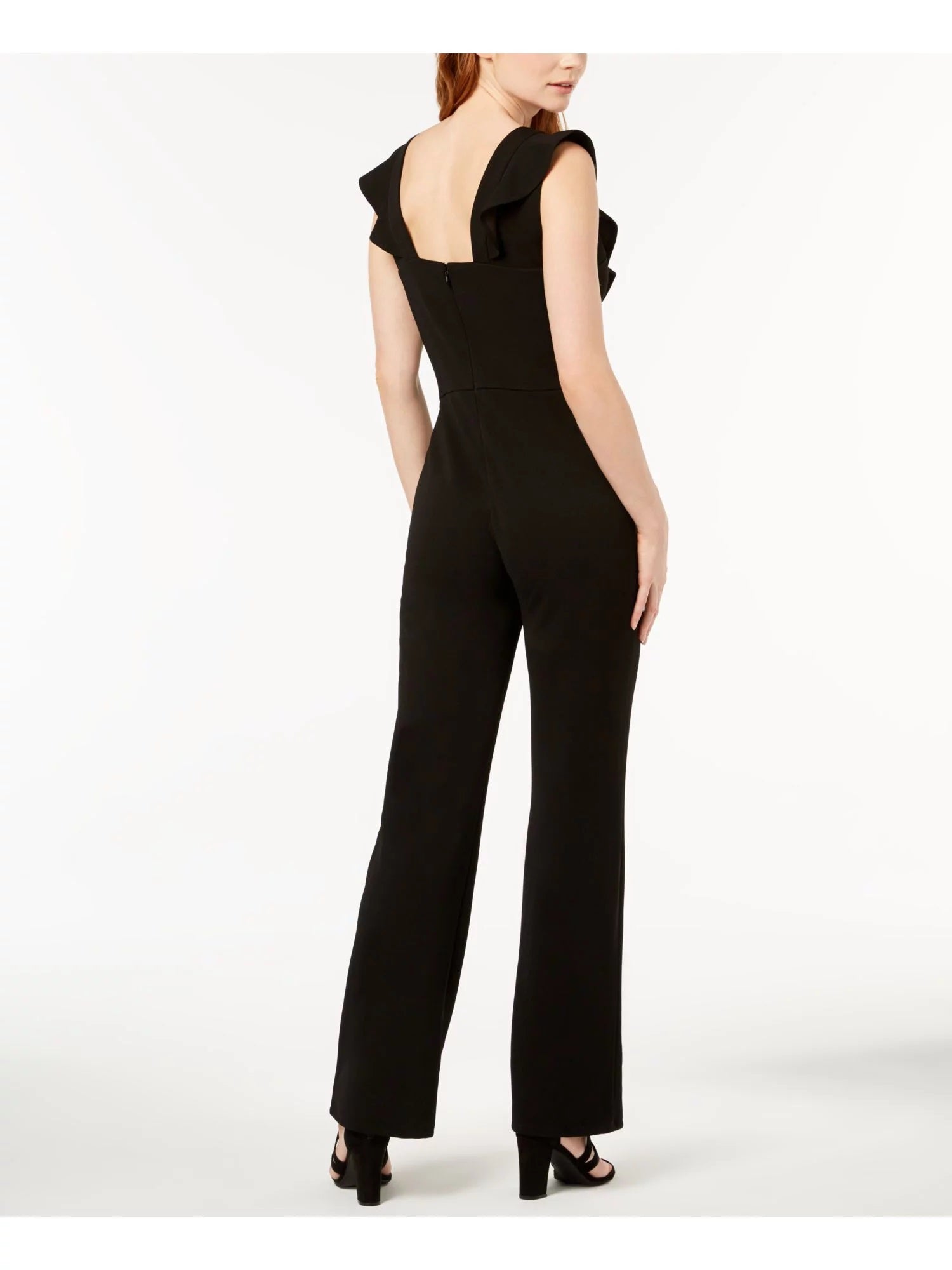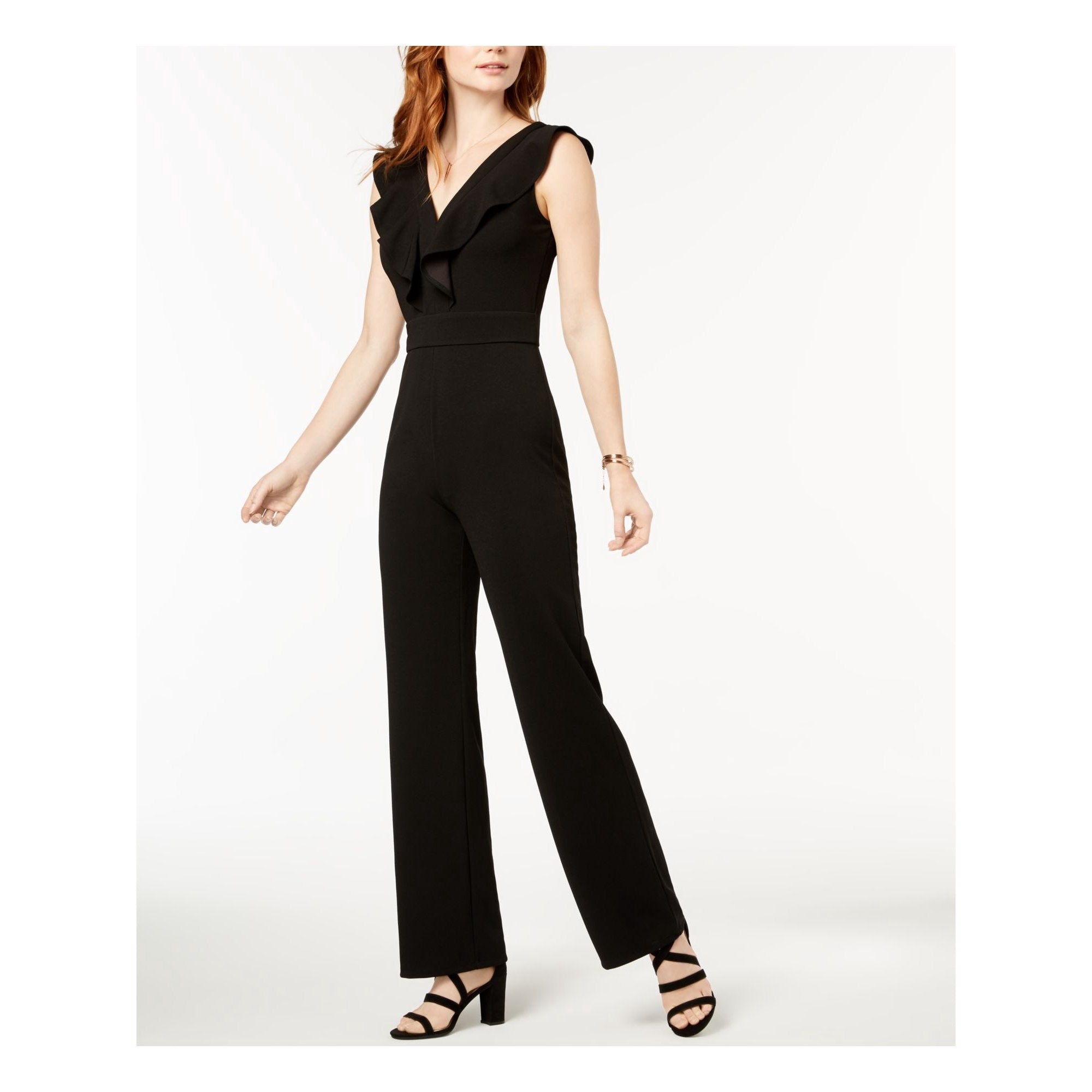 Approx. inseam; 30|Back zipper closure|Deep V-neckline with ruffles|Polyester/spandex|Machine washable