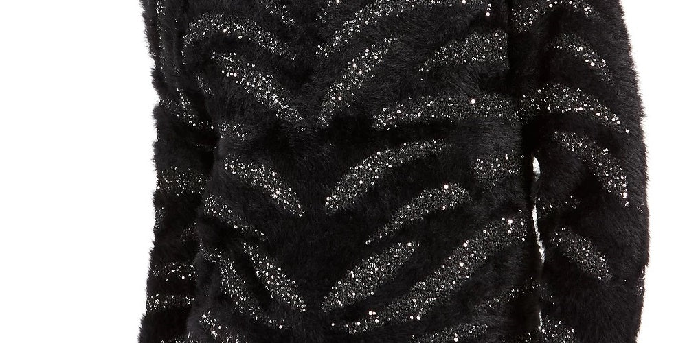 Bar III Women's Black Sequined Animal Print Long Sleeve Jewel Neck Sweater Black Size Small